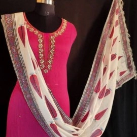 - Buy these splendid hand embroidered Designer dress with printed dupattas to enhance your wardrobe’s collection.