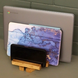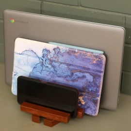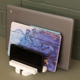 - Equipped with separate storage spaces for laptops, tablets, and mobiles, this desk gadget stand is the perfect solution to all your gadget storage problems.