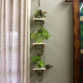 - From our wide collection of Planters one more addition, a Single Mason Glass Jar suspended by thick wooden frame.